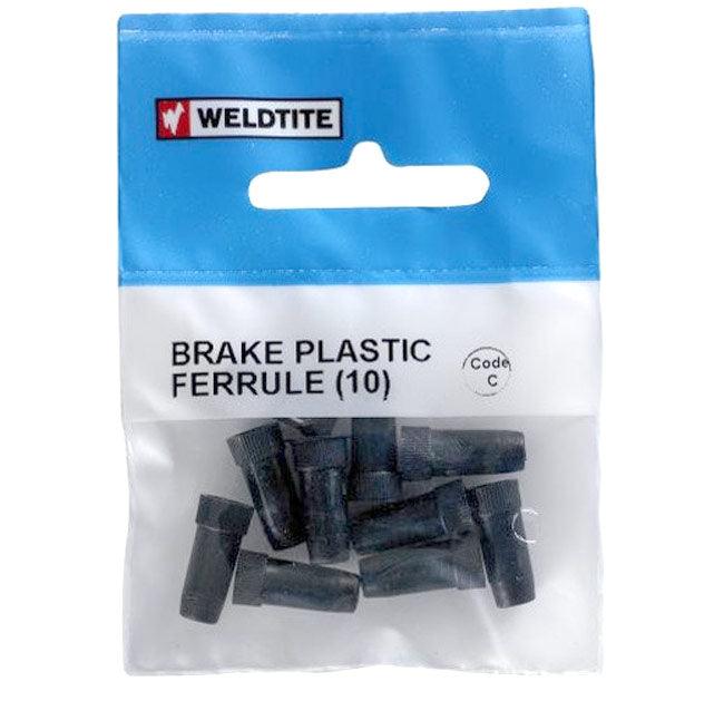 Plastic outer ferrules, used to cap the end of cycle brake outer cable where the cable enters cable stops and adjusters. NB: Brake & Gear outer ferrules are sized differently, ensure the correct type is used to prevent pulling through of cable outer strands,