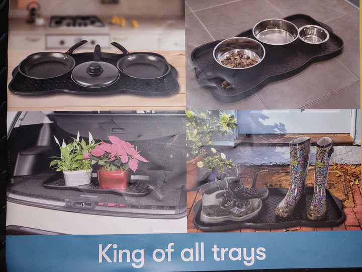 The King of all Trays is a large, waterproof multi-purpose tray ideal for indoor and outdoor use; camping or caravanning, in the shed, garage, garden or in the home. With easy carrying handles and a large lip to collect water and debris for easy cleaning.