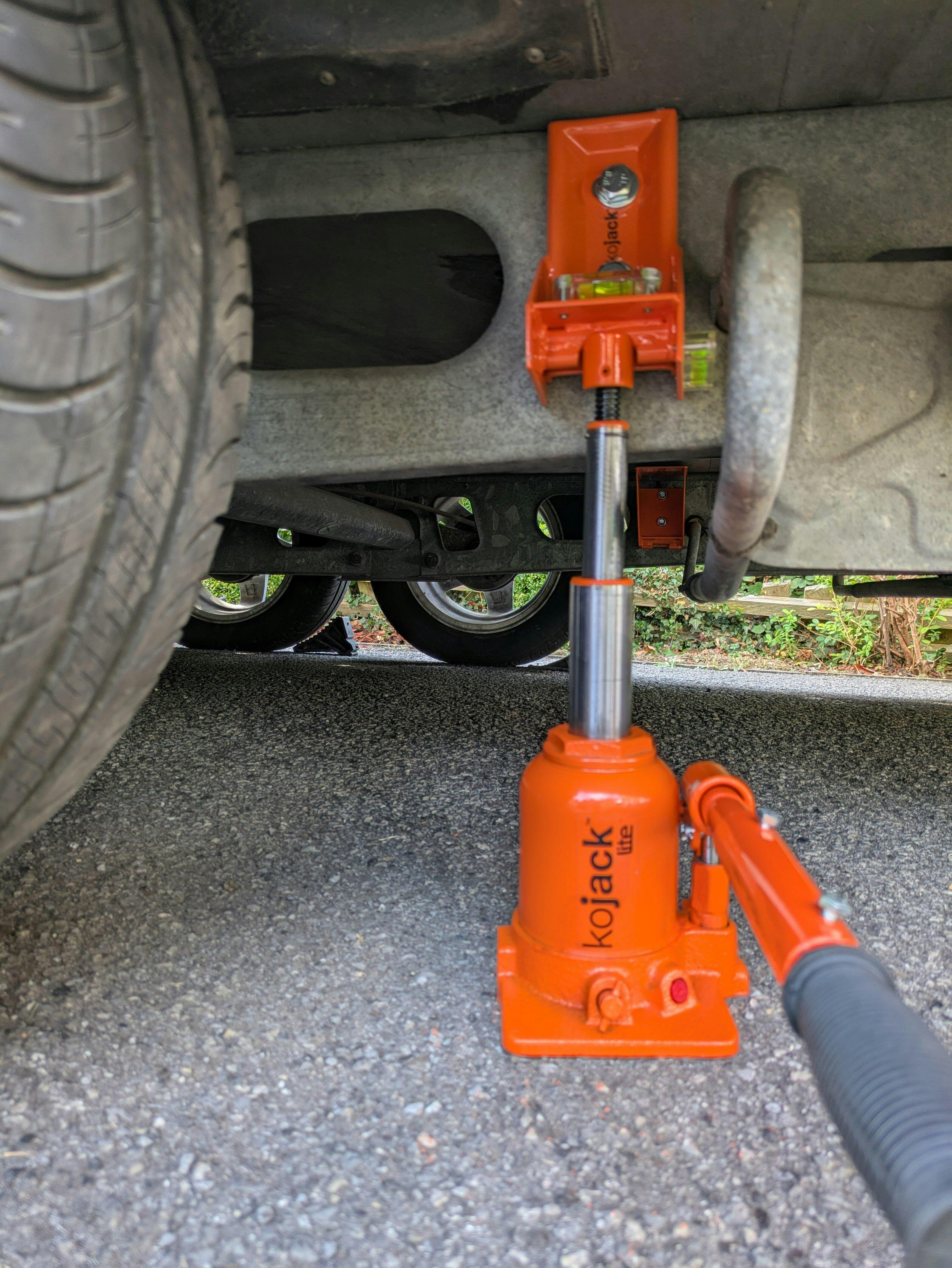A. KOJACK® is a perfect solution to lifting your caravan. However, you should not use the KOJACK® bottle jack to level your caravan, instead we recommend using KOJACK®Leveller.