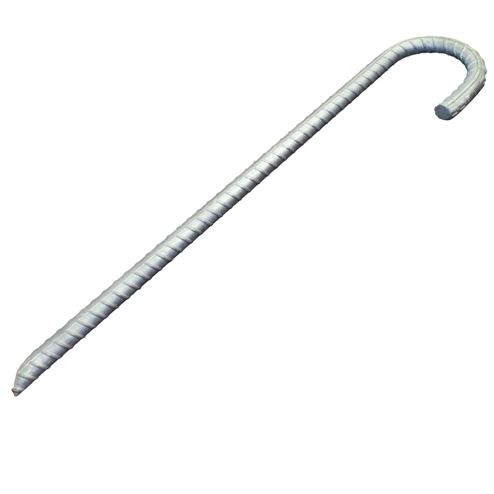 Secure shelters in any terrain with these 36cm heavy-duty ground pegs. 12mm steel, ribbed grip & 5cm hook for unbeatable stability.