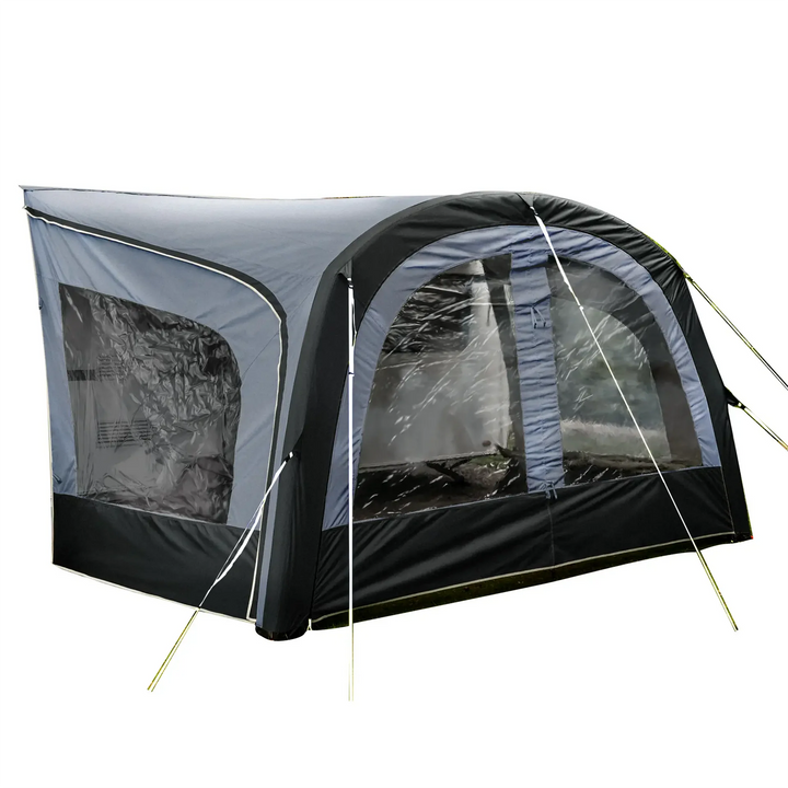 The Maypole Stratford Pro Air Sun Canopy Awning adapts to your needs. Pitch it fully open as a shaded relaxation area, or zip in the included front and side panels to transform it into a sheltered porch awning. The panels feature clear windows with privacy curtains, offering flexibility for sunny days or cosy evenings.