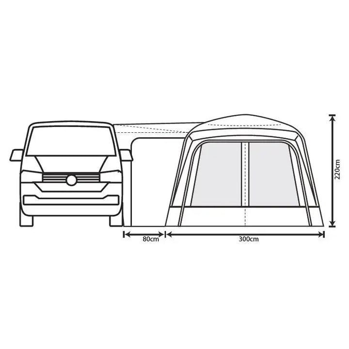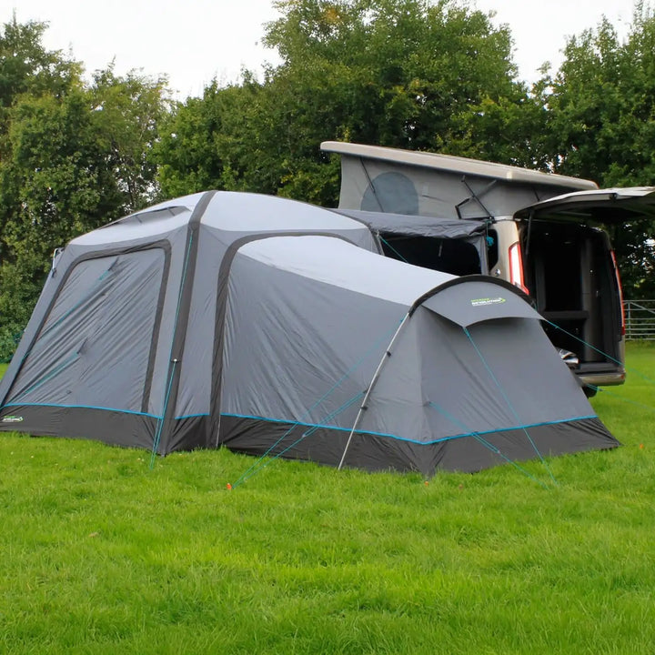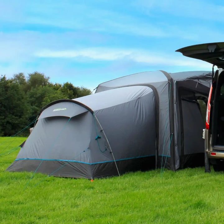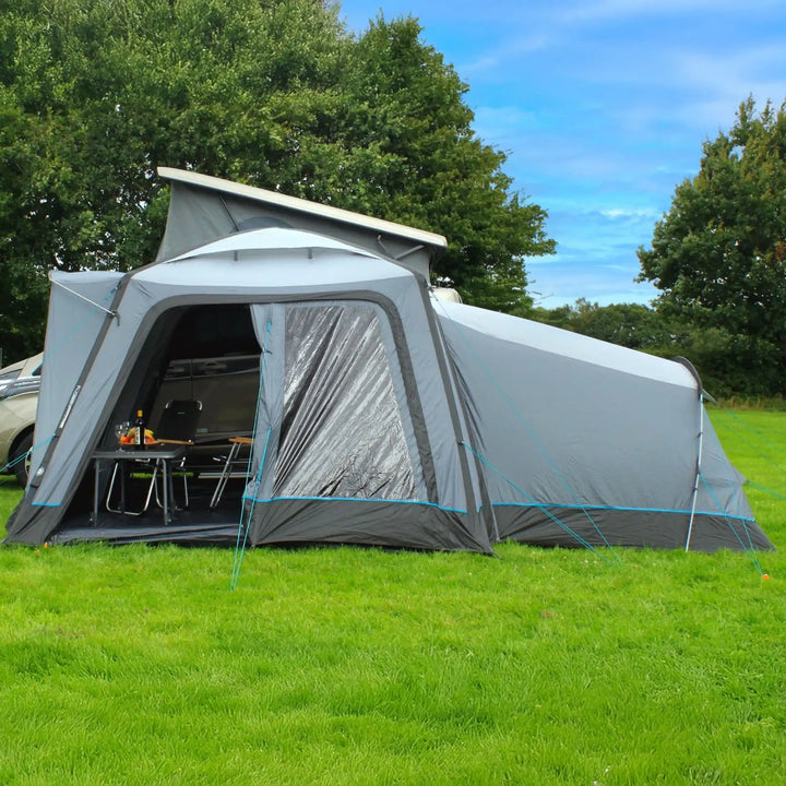 The Cayman Annexe’s modern tri-colour livery, accented with teal highlights, complements any campervan or motorhome. A side Phoenix mesh panel enhances airflow, while the external roll-up cover allows adjustable ventilation and privacy. Hi-vis guylines with quick adjusters simplify pitching in low-light conditions, and the robust yet lightweight fibreglass pole ensures stability without adding bulk.