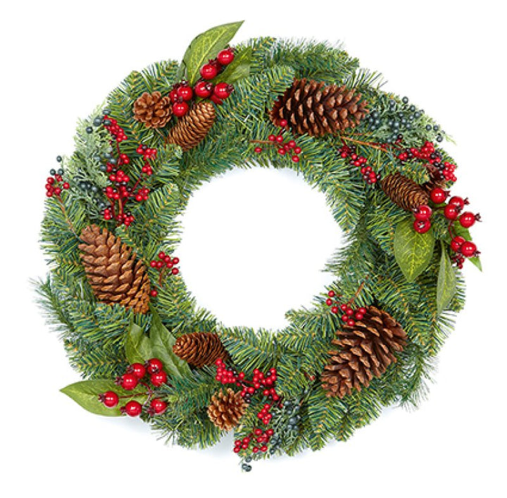 Premier 45cm Natural Red Berry Wreath With Pine Cones