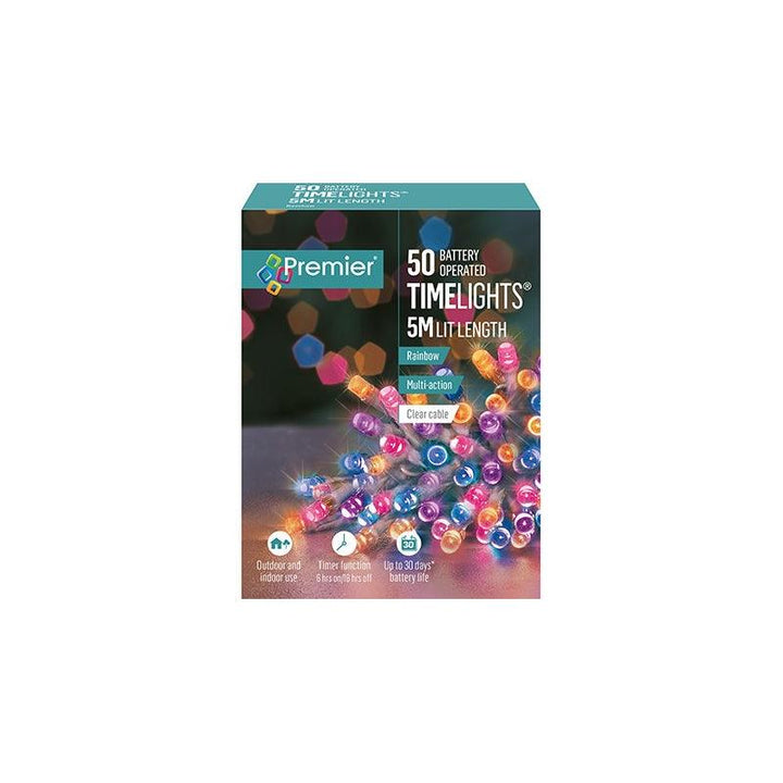 Premier Decorations 50 LED Multi-Action Lights with Timer - Rainbow