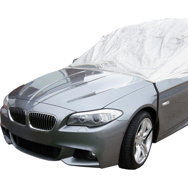 Protective water resistant car cover which fits over the top of your car covering the car roof and windows. The Simply cover is made from water resistant Polyurethane (PU) and will protect the top of your car from frost, dust, dirt, sunlight, rain, tree sap, bird droppings and road salt. The cover comes complete with front and rear hems for a very secure fit.Size: Medium - Ideal for cars such as the Audi A3, Ford Focus, Seat Ibiza, VW Golf and Vauxhall Astra.