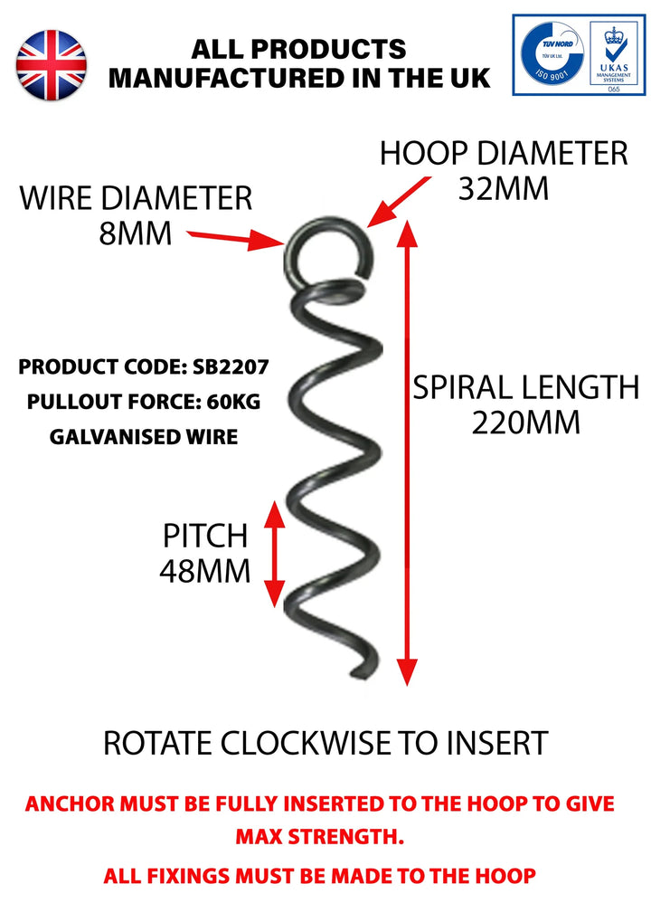 - Secures firmly and deeply into the ground to provide a secure anchor point