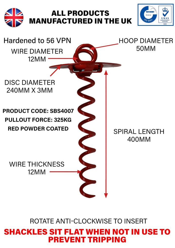 Security Anchor ideal for securing caravans, trailers, generators, ride on mowers, motor cycles and expensive garden furniture etc. Holding power worst case conditions wet ground. 3.25kn, 325kg.