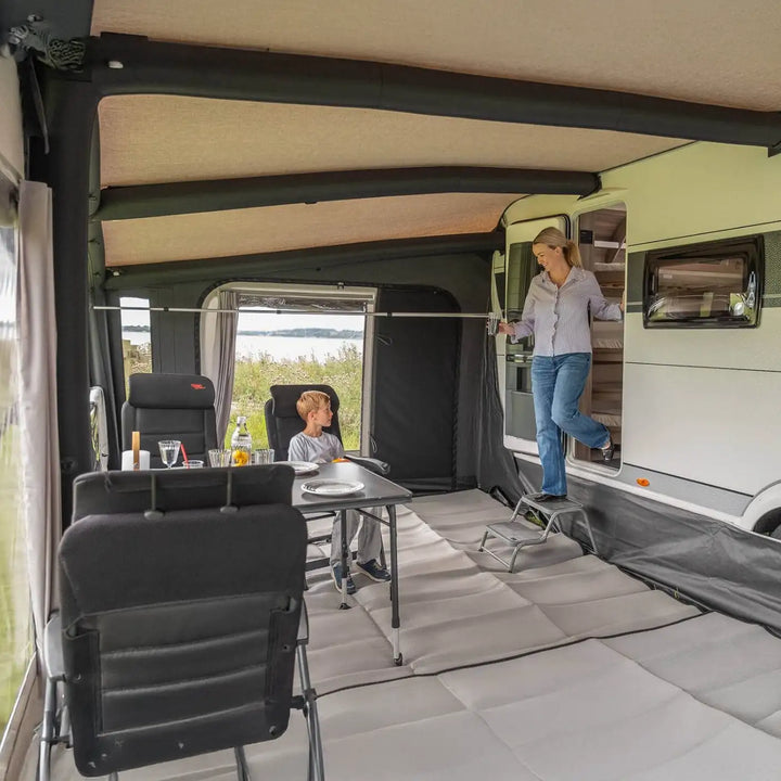 Understanding that every caravanner's needs are different, the Apex Air is designed for flexibility. All side panels are removable for easier transport and can be interchanged to change the door's position. For those needing even more space, you can add one or two dedicated Residential Extra Tall Annexes, perfect for creating additional sleeping quarters or storage space without compromising your main living area.