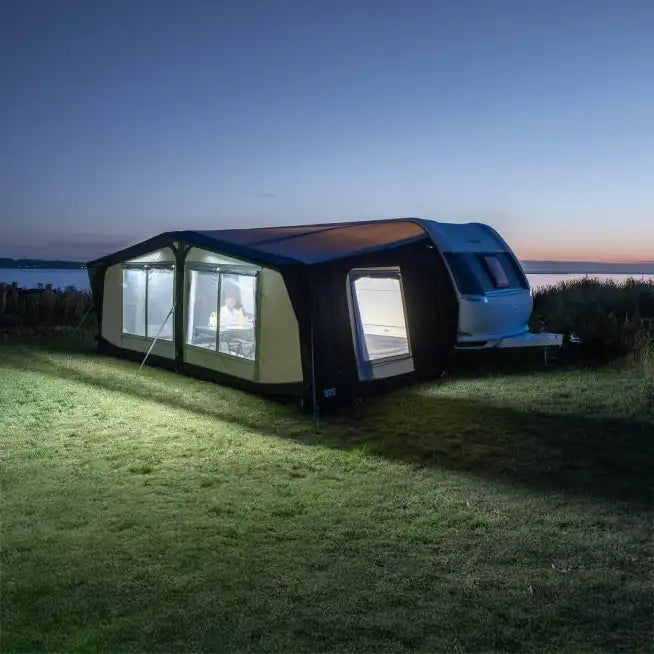 Designed for the discerning caravanner, the Telta Apex Air Residential Full Caravan Awning is the ultimate solution for seasonal pitches and extended holidays. This flagship awning from Telta blends robust, weather-ready materials with innovative inflatable technology, making erecting a large, comfortable living space simpler and faster than ever before. Experience the perfect combination of residential durability and touring convenience.