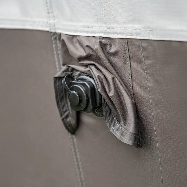 Weighing just 14.2kg, this awning is easy to handle and manoeuvre. Despite its light weight, it doesn't compromise on strength. The flysheet is constructed from high-quality 210D ripstop polyester Aerotex fabric. This material is specifically designed to resist tearing and withstand the elements, ensuring your awning remains a reliable shelter for many seasons to come. The air tubes are protected by reinforced sleeves, further enhancing the awning's longevity.