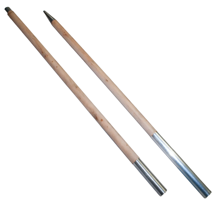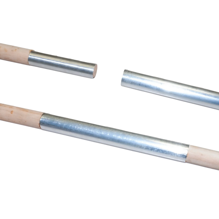 In addition to making the poles shorter to carry, the 20cm metal outer sleeve provides reinforcement, making the poles sturdier than fully wooden poles, and resistant to breakage in wind or whilst driving into the ground.