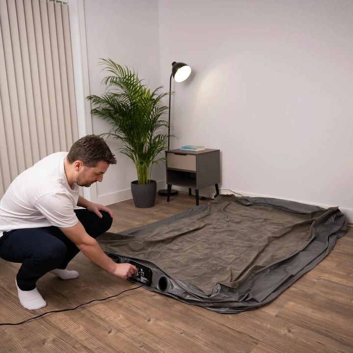 Personalise your comfort with three firmness settings. The Coil Beam Construction ensures even weight distribution, supporting up to 227kg (35st 10lbs) without sagging. The flocked PVC surface adds a cosy, tactile feel, while the groundsheet-friendly base protects tent floors from scratches.