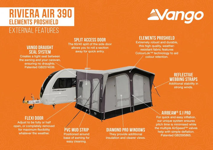 - Vango Draught Seal System - Our Patent Pending Draught Seal System creates a tight seal between the awning and your caravan, ensuring no draughts come into your awning. This eliminates the need for any poles, which may potentially have damaged your caravan.