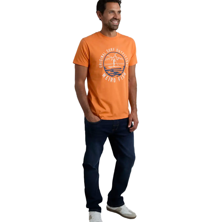 Soft cotton-polyester t-shirt in Pumpkin with paddle-inspired chest print. Relaxed fit for camping, walking & outdoor activities.