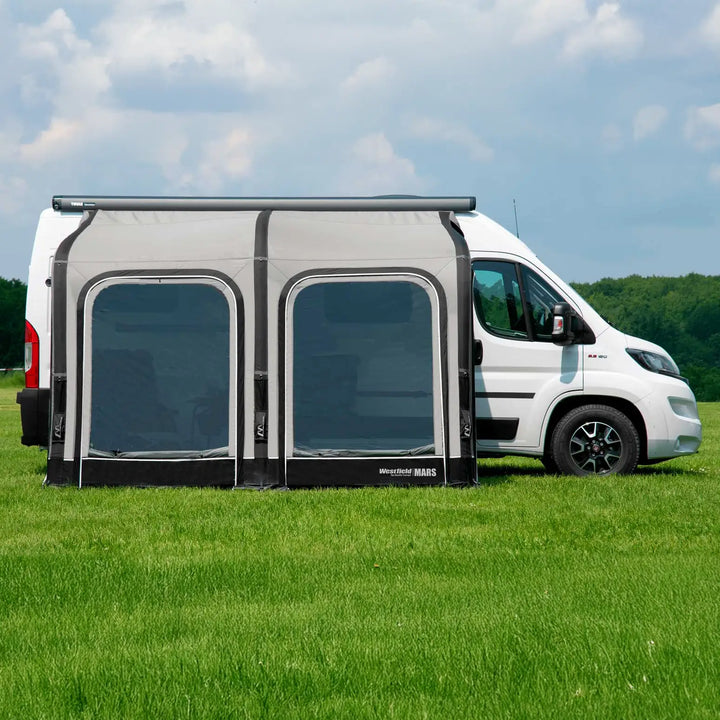 Experience the essence of outdoor living with the Westfield Mars Campervan Air Awning. Designed specifically for campervan enthusiasts, this awning combines premium materials, innovative design, and user-friendly functionality to enhance your camping experience. With its spacious interior and quick setup time, the Mars Awning lets you relax and enjoy the great outdoors in no time.