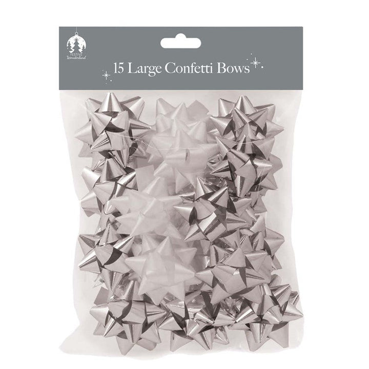 Add a sparkling final touch to your gift wrapping with this set of 15 silver and white Christmas bows. Designed to complement any festive package, these bows bring elegance and charm effortlessly. Perfect for making your presents stand out and share holiday cheer with style.